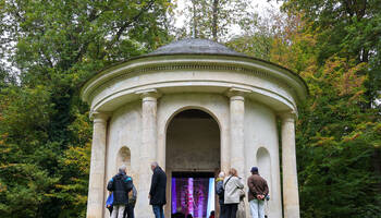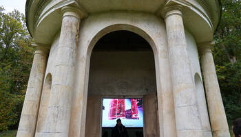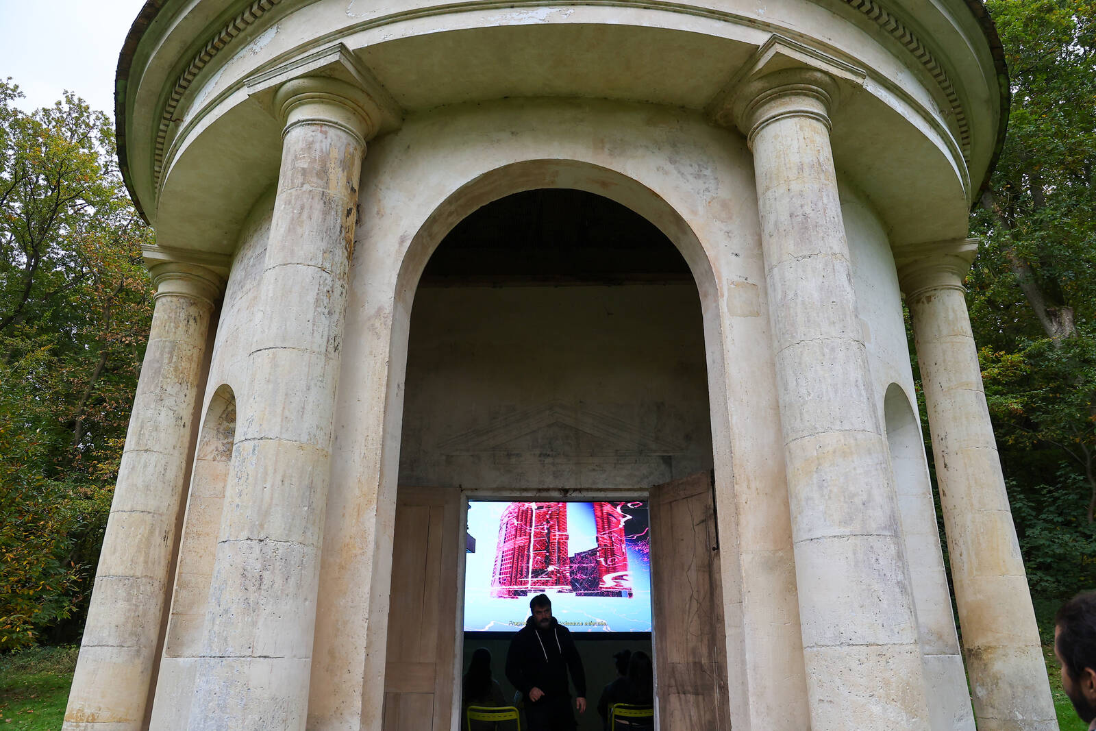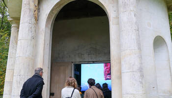 Le dimanche 19 octobre 2025, une journée portes ouvertes exceptionnelle vous a été proposée, en partenariat avec la Biennale Nemo, produite par le CENTQUATRE-PARIS. Les artistes Anne Bourrassé et Mounir Ayache ont présenté leur œuvre "Désert de Retz : Revolt", au sein du Temple au dieu Pan.
